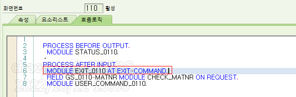위와 같이 기능유형을 'E' 종료명령어로 지정해주어야지만 EXIT-COMMAND를 탈 수가 있다.