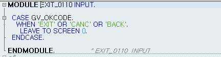 분명 MODULE EXIT_0110 안에 OKCODE를 활용 해 LEAVE TO SCREEN 0 을 선언해놨는데???